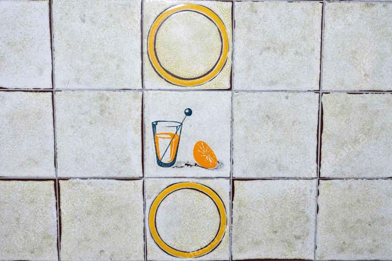 お風呂はタイル張りで、円形や四角模様とオレンジジュースのイラストが描かれていました。ほかには体を洗う用のスポンジや入浴剤のバブがあります。清掃にかなり気を配っているとのことで、バスタブもピカピカでした。