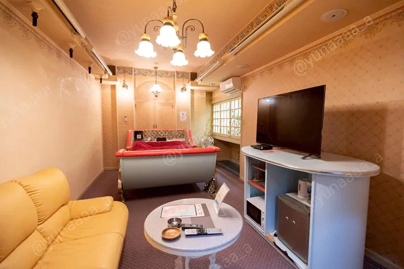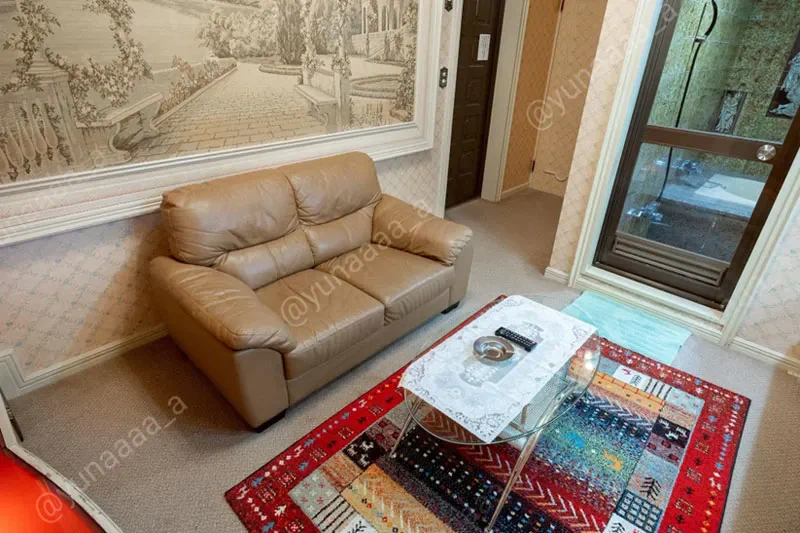 もちろんレトロさがちゃんと残っているので、昭和ラブホ好きは歓喜!純喫茶にあるようなベロアの深い赤のソファが目立っています。