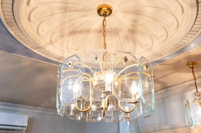 壁にオシャレな形の鏡が等間隔に並び、天井からはキラキラとした照明が下がっていて眺めているだけでうっとり。