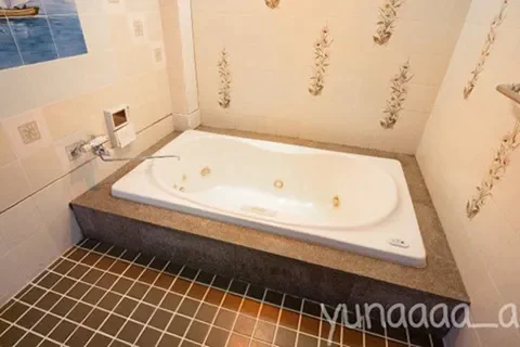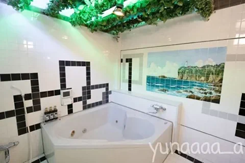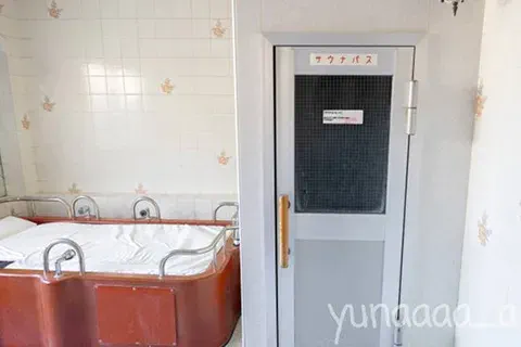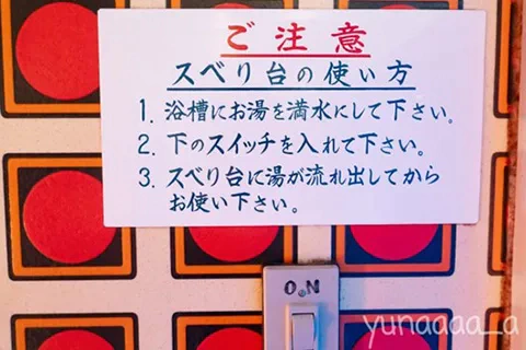 着地する浴槽は若干浅めなので、注意書きにもあるように満水にして楽しむのがベスト。そして想像以上にスピードが出るので侮るなかれ!実際に私も何回も何回も滑りました。最初は少し怖いかもしれませんが、滑っているうちにどんどん楽しくなってきます。浴室右側にある箱のようなものはサウナになっているので整うことができます。