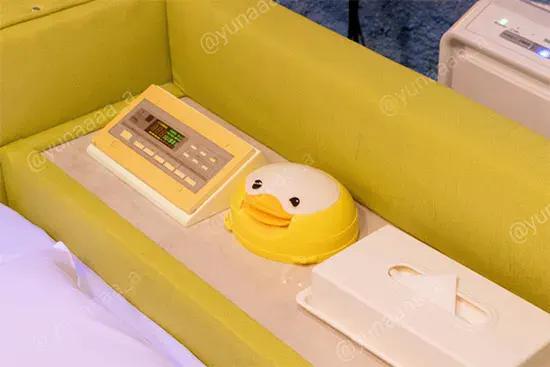ちなみにムスクでは枕元にキャラクターやアヒルの入れ物が置いてあり、何かと思って中を空けてみるとウェットティッシュが入っていました。何気にあると嬉しいアイテム!痒いところにも手が届くサービス、嬉しいです。
