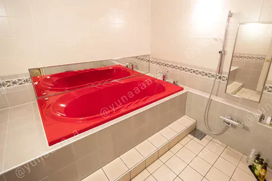 ちなみにバスタブは真っ赤。パキッとした色がとても映えます。