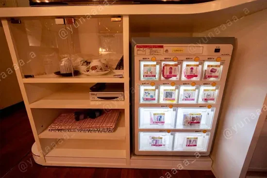 各部屋にはアダルトグッズ自販機や、飲み物の自販機も完備。
