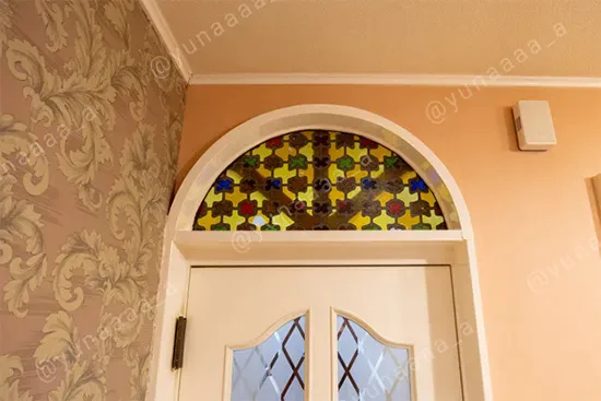 扉の上部がステンドグラスになっていて、デザイナーさんのセンスが光ります。