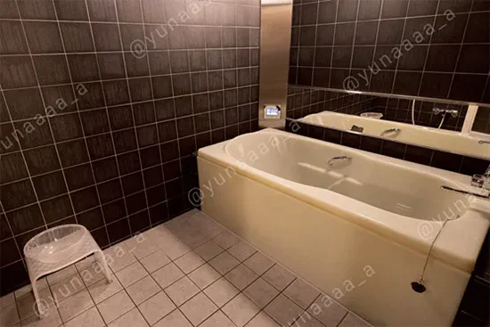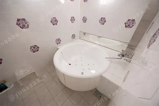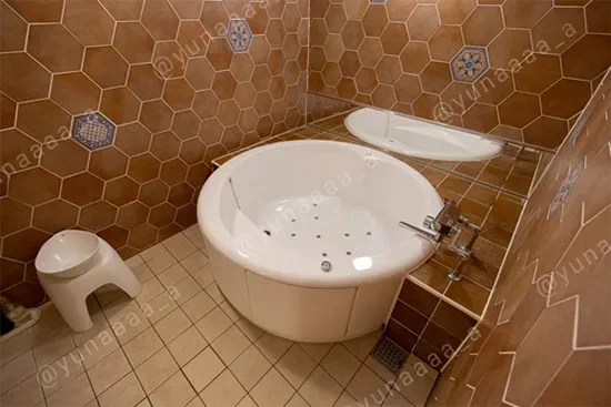 バスタブは円形。若干、ハート型のような気もしなくもないような(笑)