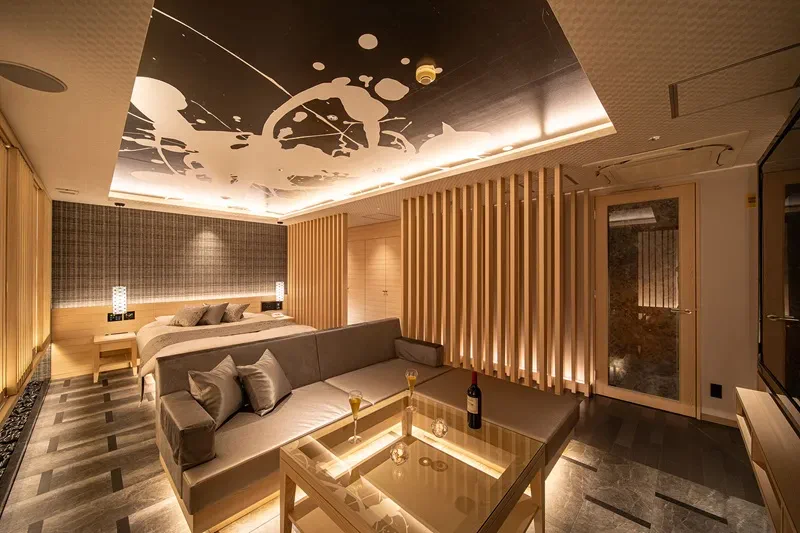 数年前にリニューアルしたという客室は、シックでモダンなデザインで、幅広い年代に愛されています。室内設備は、VODにdTV、衛星放送が全室視聴可能。ブルーレイデッキ、Wi-Fiも完備されているので、お気に入りの映画や動画をじっくり鑑賞するというのもいいでしょう。電動マッサージャーも全室完備というのも高ポイントです。
