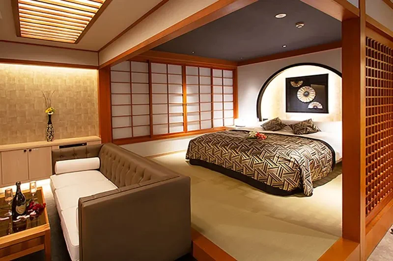 “絶対に後悔しないラブホテル”のキャッチコピーで知られるBestDelightグループのLOTUS ORIENTAL京都店。こちらのラブホテルは、和を基調とした「ネオジャパネスク」がコンセプトで、囲炉裏や坪庭が設置されている客室が特徴的です。
