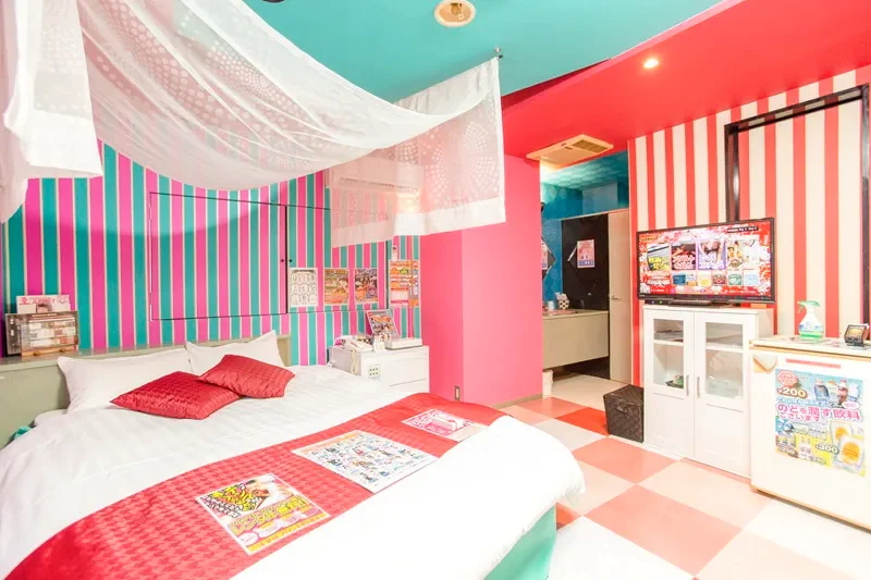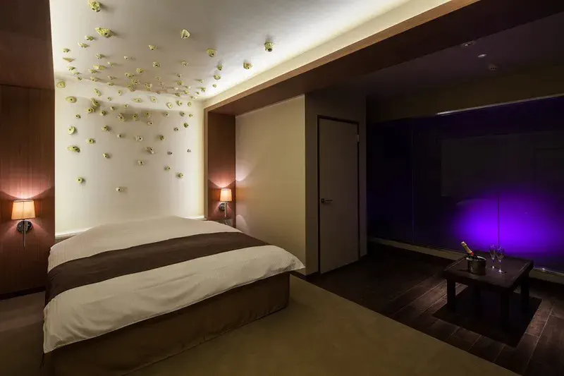 近鉄日本橋駅より徒歩3分のラグジュアリーなラブホテルです。9つのタイプから選べるお部屋と幻想的なデザインの浴室空間が特徴。大阪観光をした後はスタイリッシュなお部屋でくつろげます。また、メンバー登録をするとウェルカムドリンク・ポテト・お菓子・コスプレ・マッサージ機のレンタルなど全て無料になります。