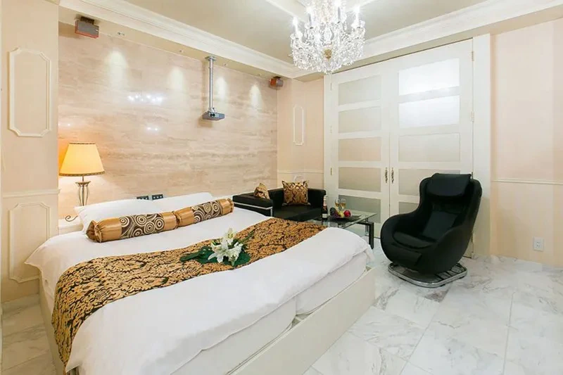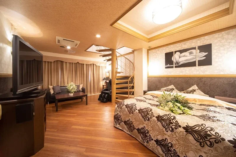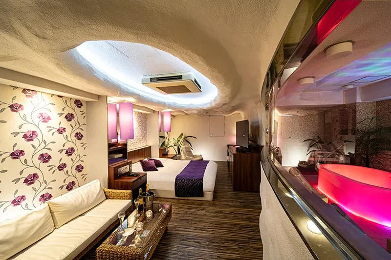 清潔感溢れる客室には、ビューティーエステバスや骨盤ストレッチチェア、その他にもサウナルームや浴室テレビなど、女性の喜ぶ設備を詰め込んだラブホテルとなっています。さらに、高級美容機器がレンタルできたり、美容ドリンクがルームサービスで利用できたりと、恋人が喜んでくれること間違いなし!