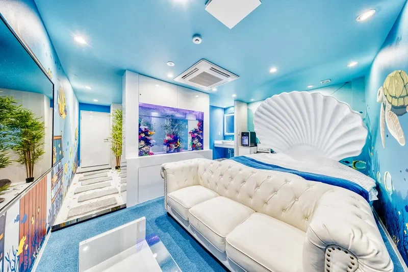 客室には輝くシャンデリアや大理石の洗面所が設置されており、リゾートホテルのような高級感を楽しむことができます。もちろんデザインだけでなく、国内最大級のグループだからこそ可能な、お得なキャンペーンやフードコラボを随時開催しています。エレメントの最新イベント情報は、ハッピーホテルや葉山ホテルズグループの公式Instagramからチェックしてみてくださいね。