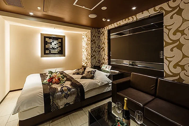 MYTH DXは高級感漂うアジアンテイストなラブホテルとなっており、客室デザインはもちろん、エントランスから廊下までラグジュアリーな空間に包まれています。客室は全22室あり、どの部屋も外観同様な豪華デザインとなっており、恋人と大切な時間を過ごすのにピッタリなラブホテルです!