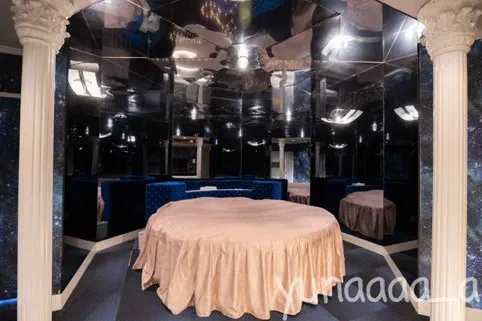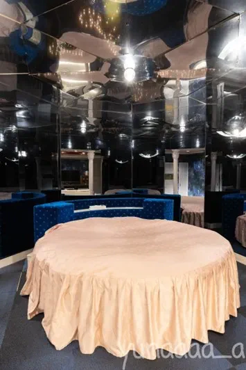 さまざまな角度でしばらく鑑賞していたくなるような素敵空間です。寝転がると天井も鏡張りという光景もたまらないですね。しかも宮殿にあるような立派な白い柱まで立っています。
