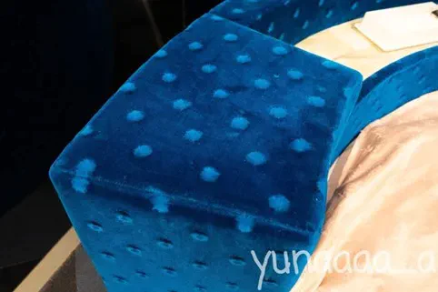 ベッドのデザインは鮮やかな青の生地に、可愛らしいドット柄になっています。