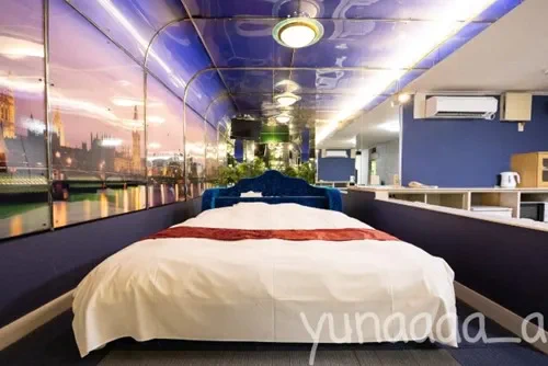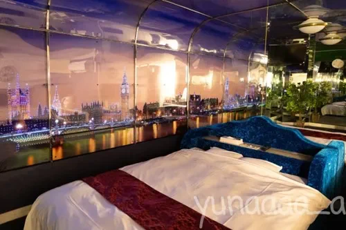 どの角度から見ても最高です。壁にはロンドンの街並みが。なぜロンドンの街並みをチョイスしたのかは、デザイナーさんのみぞ知る……!?部屋を暗くするとロンドンの街並みに豆電球がつきます。ロマンチックなムードが高まりますね!