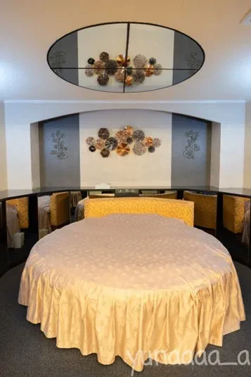 まずは111号室。円形ベッドに壁一面が鏡ばりの部屋が出迎えてくれます。圧倒させられる光景です。※回転ベッドではありません。