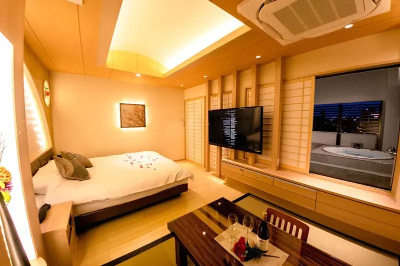 宿泊料金が最大15%オフの割引になったり、ポイントを貯めて商品をゲットしたりできるメンバー特典も見逃せません。部屋にはレインボーバスやジェット、浴室テレビ、50インチ以上のテレビ、5.1chサラウンドなど、挙げきれないくらい充実の設備が揃えられています。露天風呂付きのお部屋は特に大人気!クチコミで評判なので、事前に空室情報をチェックしてから足を運んでみましょう。落ち着いた時間を過ごしたい方におすすめのラブホテルです。