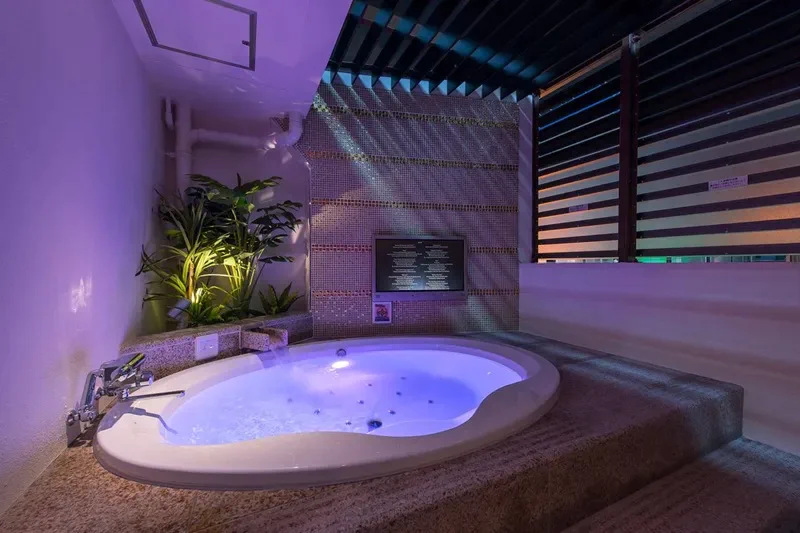 大人の雰囲気が漂うモダンアジアンテイストなデザインが特徴的なラブホテル、トロピカーナ。岩盤浴や最新型マッサージ機、レインボーバスやジェットバス、スチームサウナまで揃った充実の入浴設備は大好評。非日常的なバスタイムを心行くまで楽しむことができる他、お部屋にも大型のテレビなど様々なエンタメ設備が揃っており、楽しい時間を過ごせるようになっています。