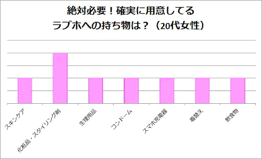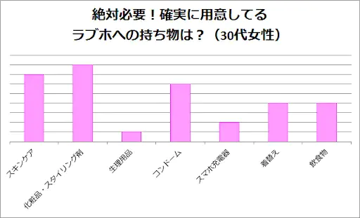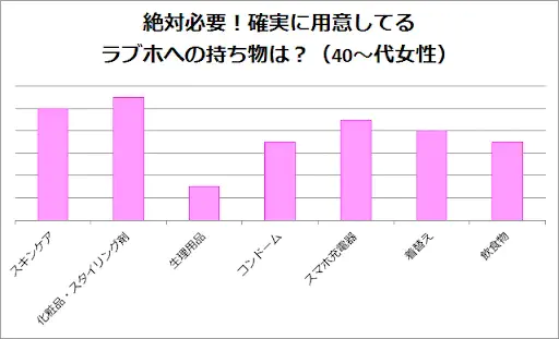 20代女性はあまく特別な持ち物をもたなくても、ラブホに備えてあるアメニティーで大丈夫と捉えているのかもしれません。