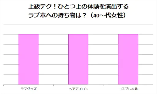 さて、続いてラブホでひとつ上の体験を演出すべく、「上級者たち」が持参している持ち物に関してもアンケートしてみましたのでご覧ください。