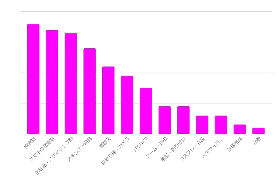 もっとも多かったのが「飲食物」で、僅差で「スマホの充電器」が次点につけています。