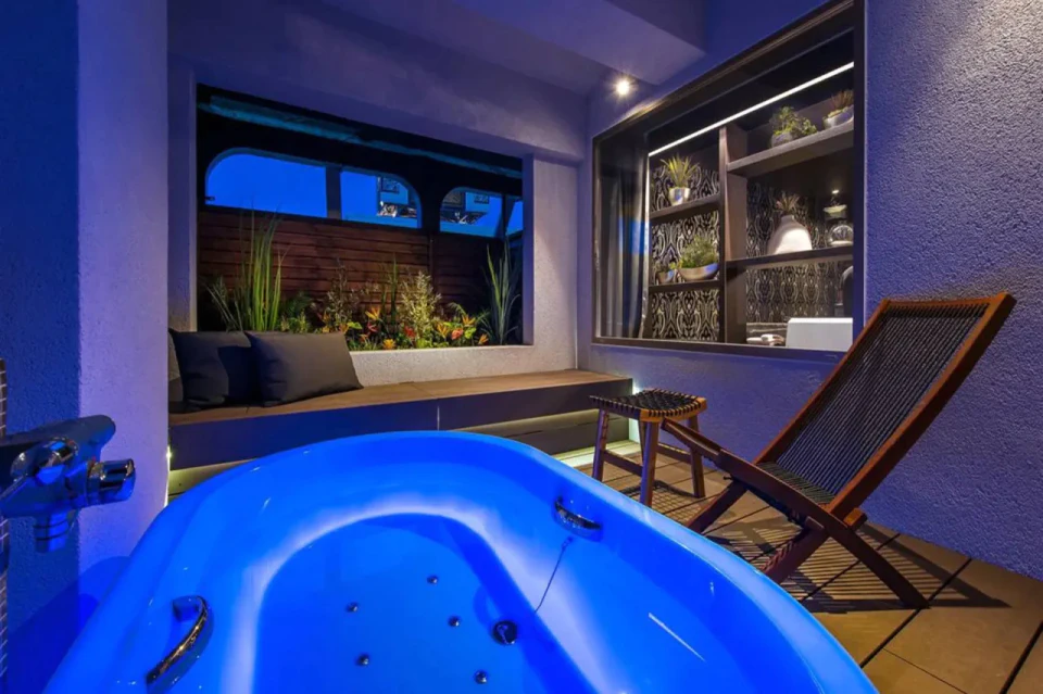 最寄り駅の京成本線「船橋競馬場駅」から徒歩3分の「HOTEL SHIP`S URBAN RESORT」。「幕張メッセ」まで、車だと15分で到着します。「東京ディズニーリゾート」も車で30分ほどなので、アクセス抜群の立地です。どのお部屋もモダンなデザインで、露天ジャグジーバスや庭をイメージしたプライベート空間などを楽しめます。幻想的な色にライトアップされた「ジャグジーバス」に癒やされてみてはいかがでしょうか。
