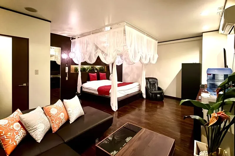こちらもハピホテの口コミで星4つ以上を獲得している人気のラブホテルです。外観は近代的で、一目で目的地だとわかるほどのおしゃれさが感じられます。客室にはクロームキャストやBluetoothスピーカー、20インチ浴室TVを完備しており、保湿性に優れたナノテク水を採用。過ごしやすさは抜群です。