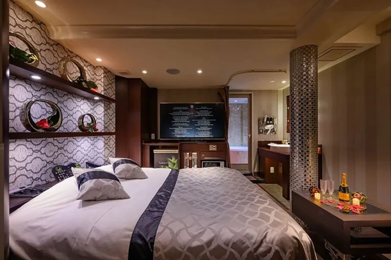 24時間注文可能な飲食メニューにも力を入れており、ホテルで食事を摂るデートプランもおすすめ。客室デザイン、設備、サービス、どれをとってもクオリティが高く、ラブホテルに多くの要素を求める2人にこそ来店してほしいホテルです。