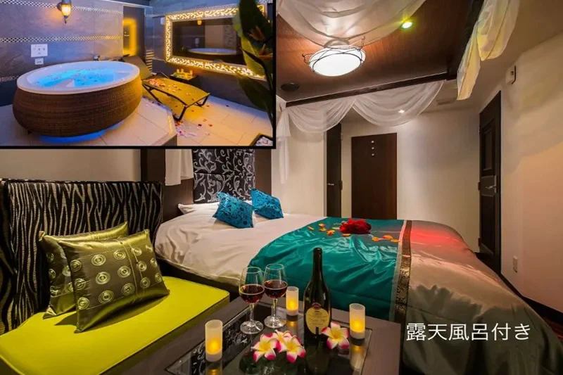 特別な日には露天風呂付きの客室もご用意。都会にいながら開放的なバスタイムを楽しめるということで人気を博しています。特別室には他の客室と異なるアメニティやタオル類が用意されているため、プレミアム感も高まりますね。ハピホテの口コミでも軒並み高評価を集めており、安心して利用できるラブホテルです。