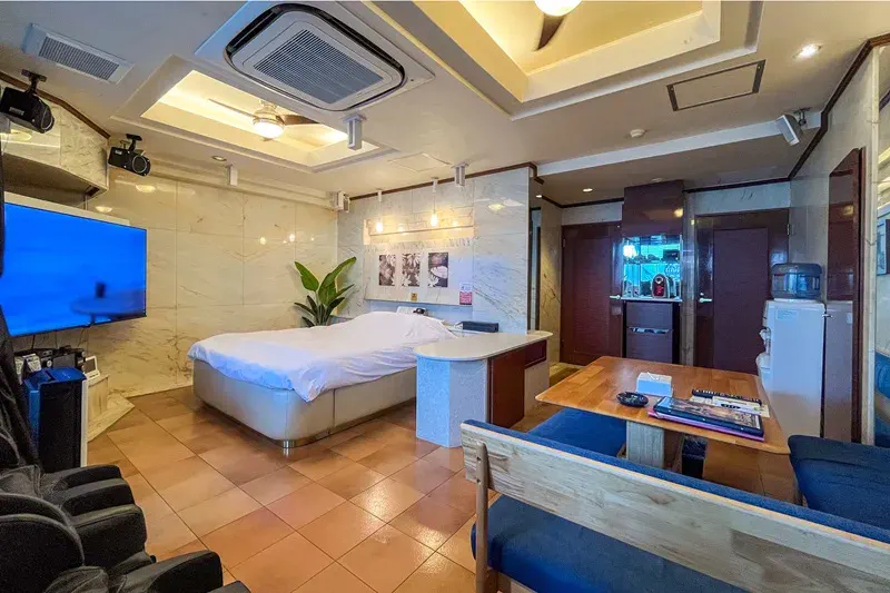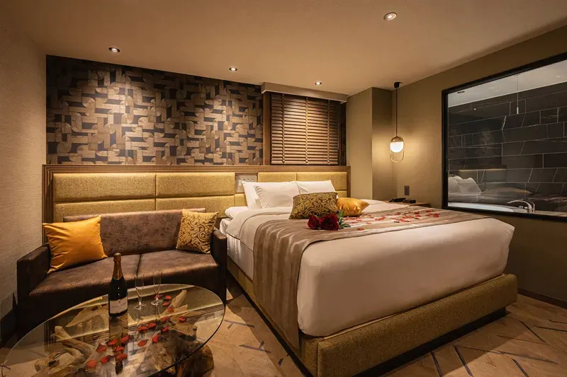 このホテルを訪れるならば、ぜひ利用していただきたいのが新横浜エリアでは最大級の広さという、プレミアムスイートルームの「902R」「903R」。プレミアムスイートの名に恥じない、54㎡の広々とした客室、きらびやかでゴージャスな内装、マッサージチェア(「902Rは2台!」)、露天風呂、ドライサウナまで完備されています。こちらのラブホテルでも女子会が盛んに行われており、カラオケ利用として代用できるプランなども用意されていますので、公式サイトも是非ご覧くださいね!
