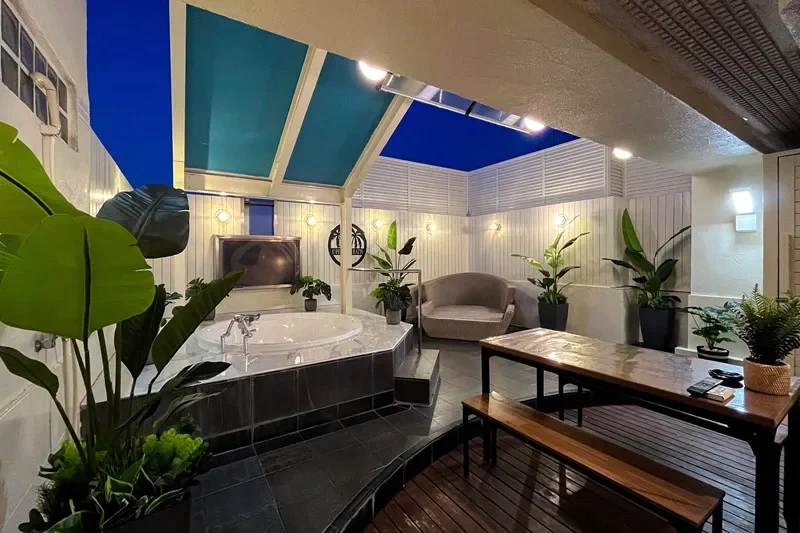 二人で寛げる岩盤浴は三種類の天然石を使った本格派!開放感溢れる露天風呂は広々スペース!そして今回、新横浜初の「ナノ水」(浸透・保湿・温浴作用に優れ化粧水のような肌触りが楽しめる)を全室に完備しました。豊富な設備で贅沢なひとときを約束します。