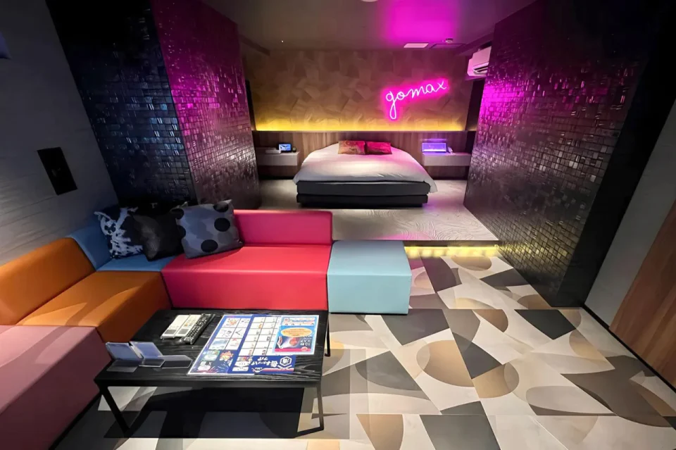 露天風呂や岩盤浴が付いた客室もあれば、ダーツやカラオケが出来る共用部もあり、1日中楽しめること間違いなし!