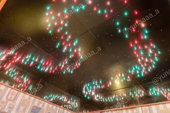 ベッド上の天井には無数の豆電球があり素敵なムードを演出してくれています。実はこの天井には、とある仕掛けがあるのですが……。