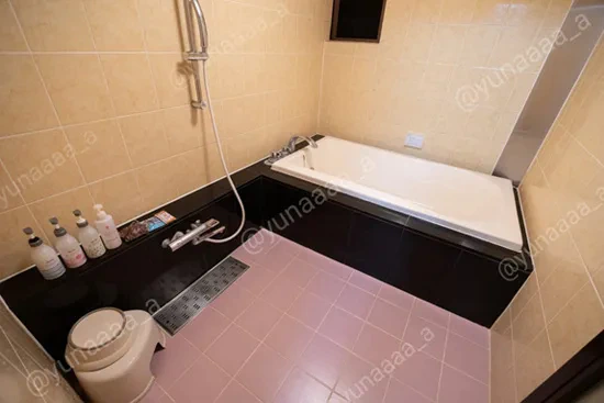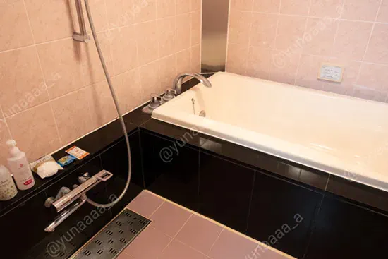 浴室は改装されているのか、今どき風です。女性であれば脚を伸ばして入浴できるサイズ感になっていて、一気に疲れがほぐれそうです。