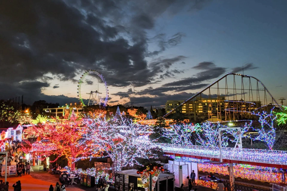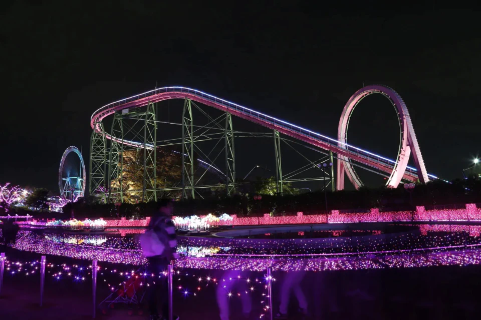 よみうりランドのジュエルミネーションでは、期間中限定デザインとなる絶叫系ジェットコースター「流星コースター スターライトバンデット」をはじめ、最大高度60mから高速で上下しながらパークの絶景を見下ろせる「クレージーヒュー・ストン」、360度回転し「逆さイルミ」を楽しめる「ルーピングスターシップ」など、40種類以上のアトラクションや多くのイルミネーションスポットを通じて様々な楽しみ方ができます。