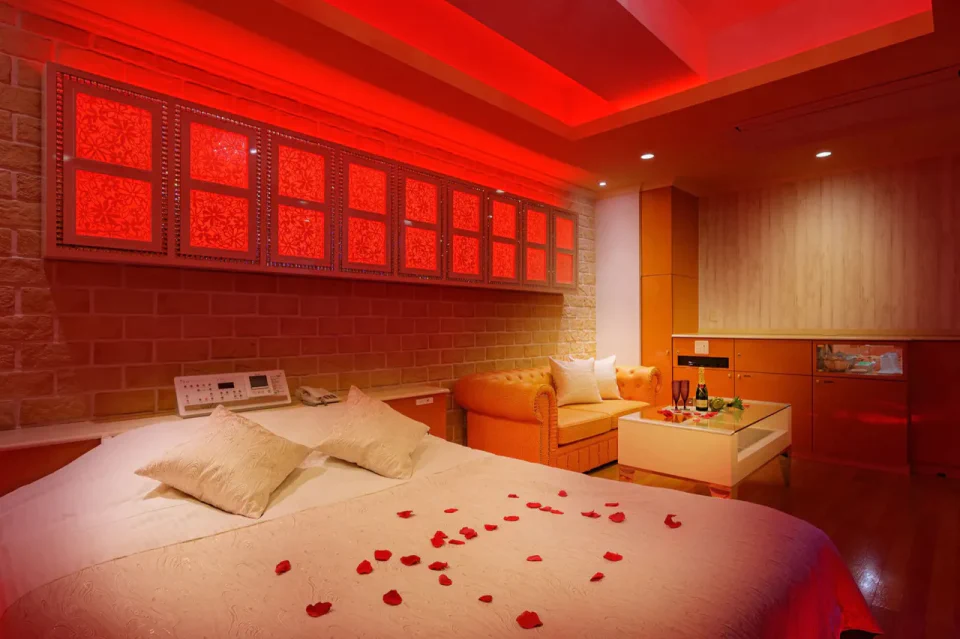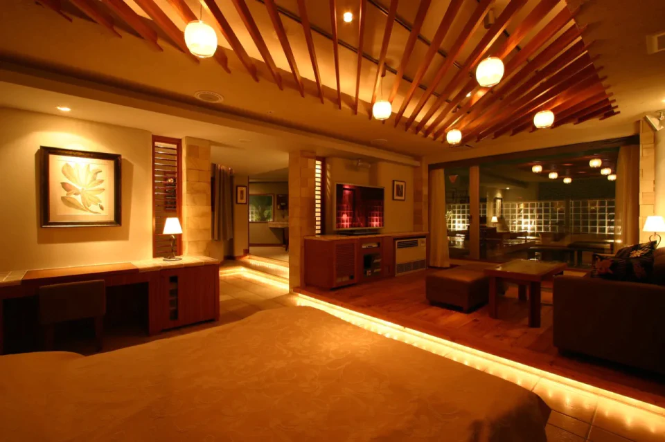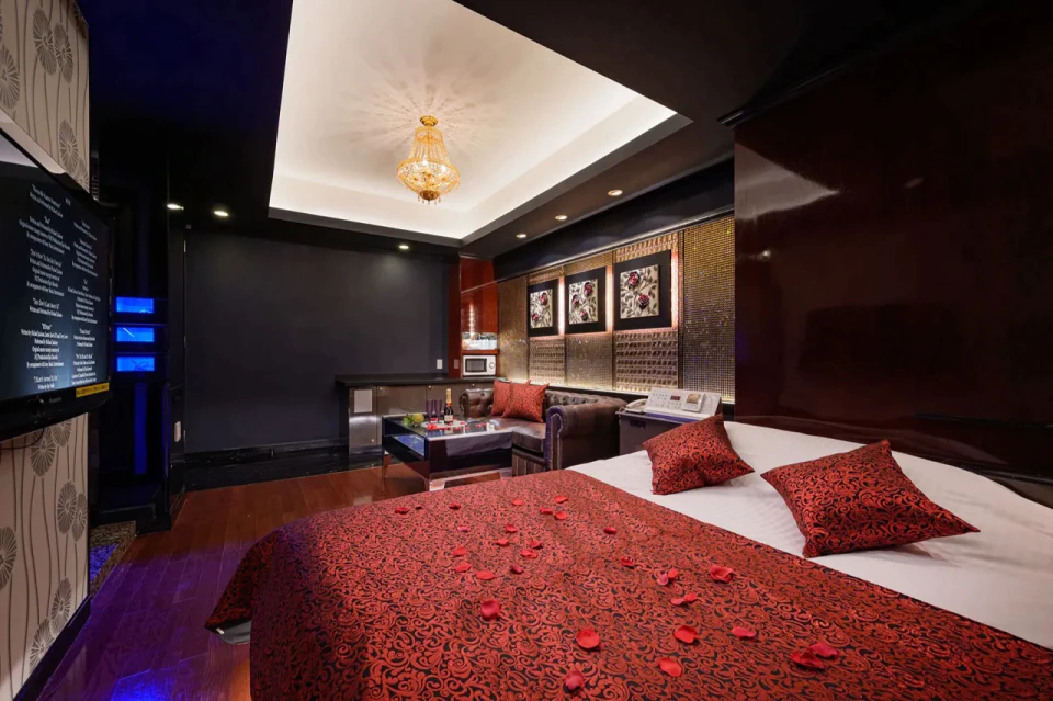 全体的にスタイリッシュなお部屋が多いのですが、シックでモダンなデザインのお部屋は、備え付けられたブラックライトを使えばラグジュアリーな雰囲気に様変わりします。