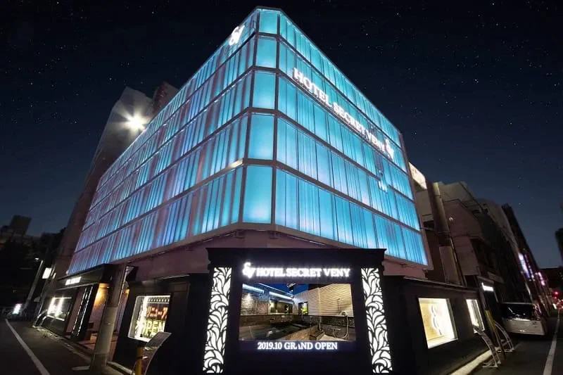 錦糸町のラブホ街の中でも、一際明るい外観のホテルシークレットベニーは、1人利用から女子会利用まで幅広く利用されているラブホテルです。