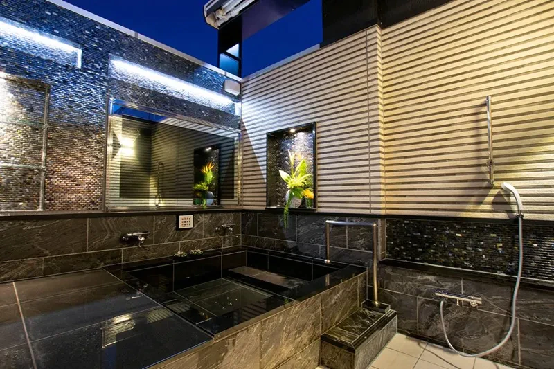 全室にジェットバスやカラオケ機器が設置されており、上位クラスにはミストサウナや露天風呂、和風テイストのデザインルームまで用意されています。