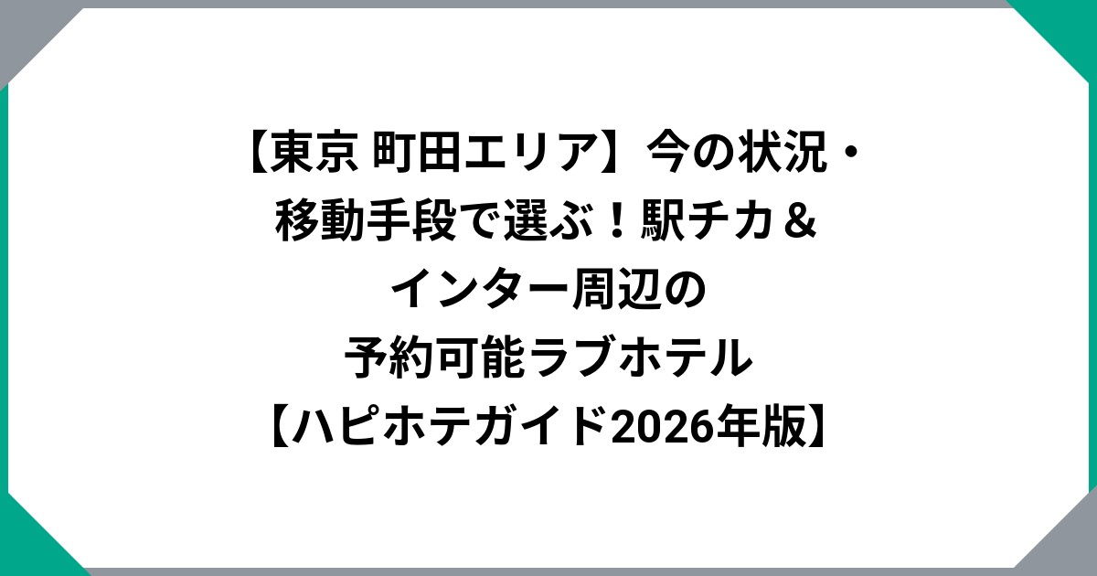 【東京 町田エリア】今の状況・移動手段で選ぶ!駅チカ&インター周辺の予約可能ラブホテル【ハピホテガイド2026年版】