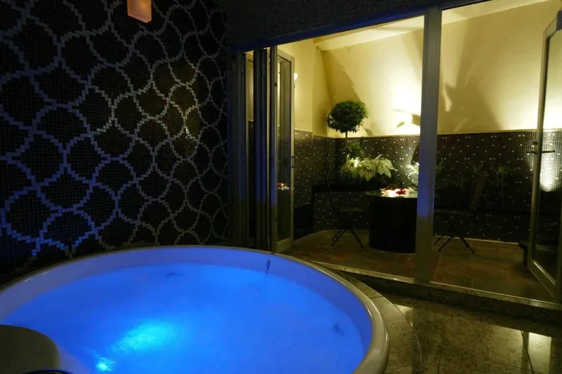最も評判が良い客室は、ホテル最上階にあるスイートルームの601号室です。家具や照明など、レイアウトへのこだわりが伝わってくる部屋になっています。特にこの部屋の目玉は、大理石の階段を上がったら見えてくる露天風呂です。オープンエアーで開放的な空間にガラスで仕切られたジャグジーバス、まるで海外セレブになったかのような“非日常的”を体験できます。