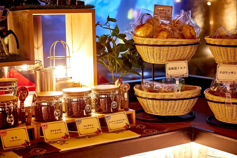 グランピング気分が楽しめる新しいバリアンリゾート! 1階ロビーにはフリードリンクコーナー、お菓子やデザート、パンにスープと様々な軽食をご用意しております♪ 24時間いつでも無料でご利用いただけます!