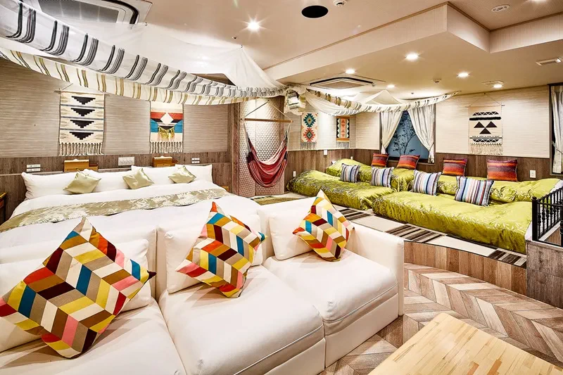 こちらはユーモアな世界観が人気のデザイナーズホテルです。西武新宿駅から徒歩1分の好立地にありテーマパークのようなポップな内装から、モダンな雰囲気の内装まで、様々なコンセプトのお部屋を楽しめます。“映える”写真が撮りたい場合はこちらのラブホテルで間違いありません!どの部屋もおしゃれで、女子会利用でも楽しめます。中でもVIPルームはメゾネットタイプになっており、広々とした一階の部屋だけでなく、2階に上がると露天風呂が楽しめます。