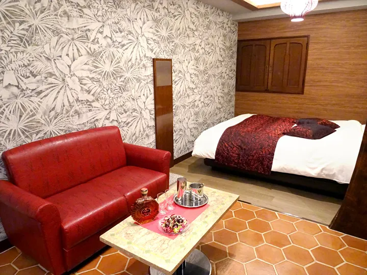 オススメは赤と黒をベースに、落ち着いたモダンな雰囲気を演出する「206」や、花柄の壁紙と間接照明が上品さを醸し出す「302」。マットな緑のインテリアがアクセントになっている「203」や、華やかさと大人っぽさがマッチした「211」など、禁煙部屋は10部屋あり、喫煙、禁煙でセレクトできる点もポイントとなっている。