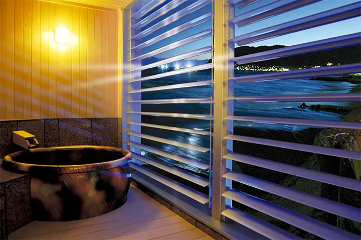 刻一刻と表情を変える、荒々しくも美しい津軽海峡を眺めながら過ごせる部屋は、このホテルを語るうえで外せない要素だ。「201」「202」「203」などの7部屋の中でも、人気は露天風呂付きの「205」。開放感にあふれる浴室で湯に浸かれば、目の前に広がるのは雄大な海と遠くに見える街並み――朝は柔らかな陽光に包まれ、夜はぽつりぽつりと水面に浮かぶ漁火を眺めながらゆったりと体を癒すことができるだろう。