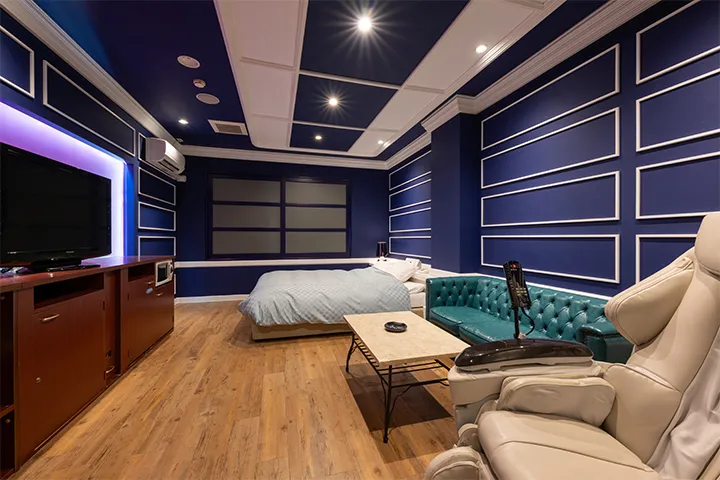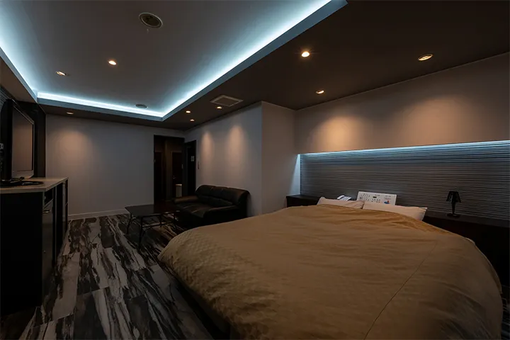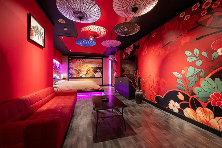 また落ち着いた雰囲気とは打って変わって、一味違う趣向を凝らしている「202」も見逃せない。テーマは「花魁」。華やかさだけでなく妖艶な一面もある色使いと装飾は、まるで江戸時代の遊郭に迷い込んだかのような気分を満喫できるだろう。いつもとは違う妖しげなムードで、熱い夜を過ごしたい2人にぴったりだ。