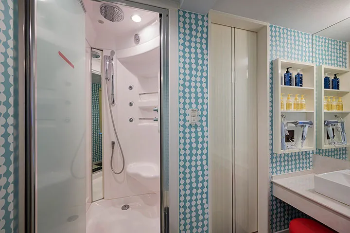 コンセプトに掲げているのは「お客様ファースト」。内装はもちろん、サービスや動線などに細やかな工夫があり、ゲストの時間がより豊かなものとなるようデザインされている。例えばシャワーブースを備えた17号室。明るい花柄が咲き誇る壁紙が印象的で、可愛らしさと心地よさが同居する空間だ。また同じくシャワーブースのある10号室は、アフリカンカラーのアクセントが空間に陽気なリズムを添えてくれる。どちらも手頃な価格帯ながら、思わず長居したくなる包容力が魅力だ。