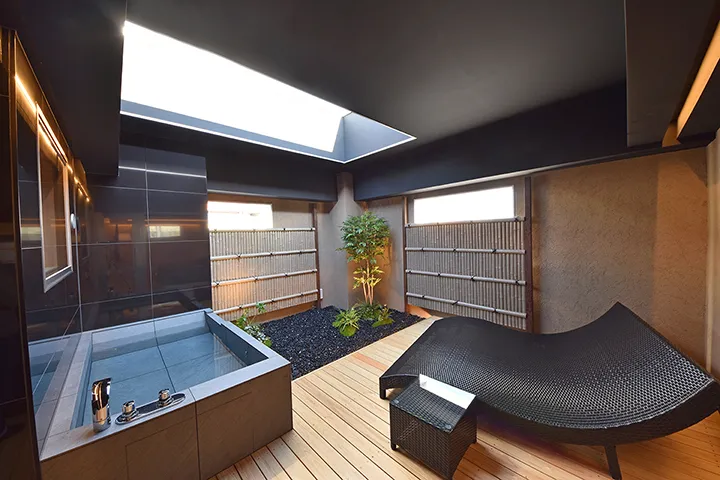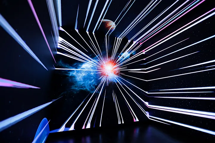 なかでも注目の部屋は「505」。シンプルでおしゃれな空間の一角に、四方をLEDビジョンに囲まれた“日本初”の没入空間が広がる。現在は、宇宙空間やAV撮影現場など4種類のシチュエーション映像を投影可能。映像に包まれるという新感覚は、一度体験すると忘れられない。今後はさらにバリエーションが増える予定で、いくつもの非日常を味わえる、まさに想像力を刺激する空間だ。