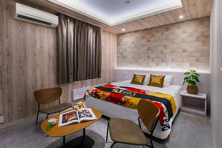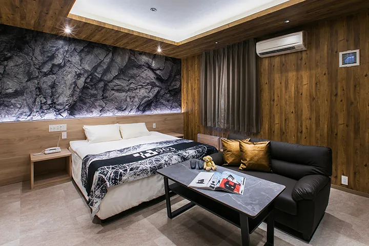 全18室の客室はどれも落ち着いた印象の内装。ブラウンやブラック、ベージュを基調とした色合いでシックにまとめられ、洗練された雰囲気を演出している。重すぎず、それでいて確かな存在感を放つ空間は、訪れる人を自然にリラックスさせてくれるだろう。