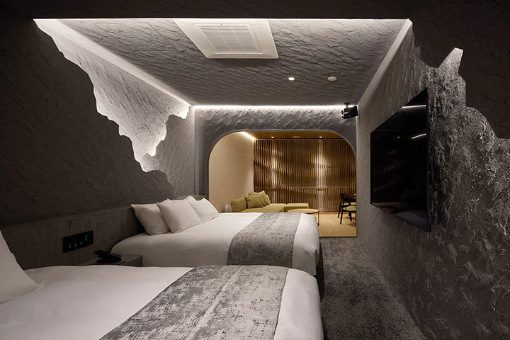 “月と太陽”をテーマにした、ふたりのための隠れ家『ホテルBUNOIR』。静けさと温もりが同居するこの場所は、日常の喧騒からほんの少し離れたいときに、やさしく迎え入れてくれる。設計の中心にあるのは、心地よさという価値。従来のレジャーホテルの枠を越えた、新しい滞在体験がここにある。