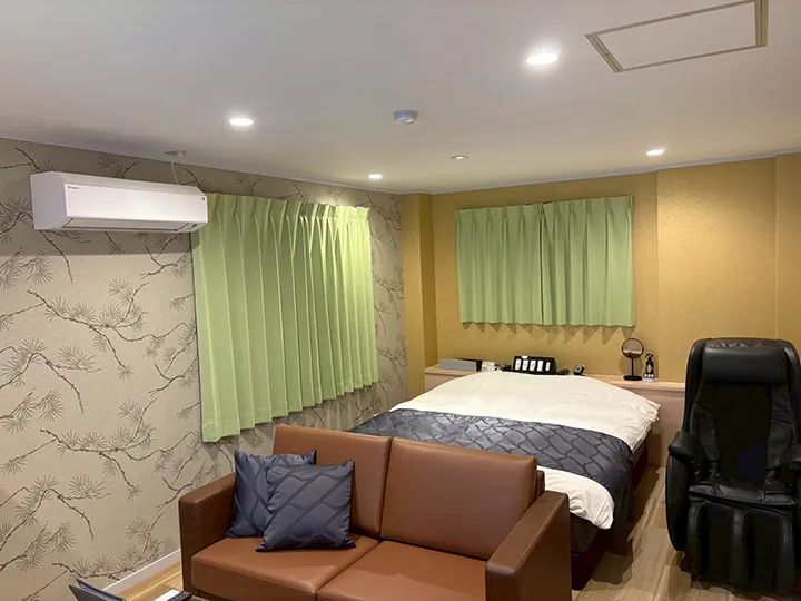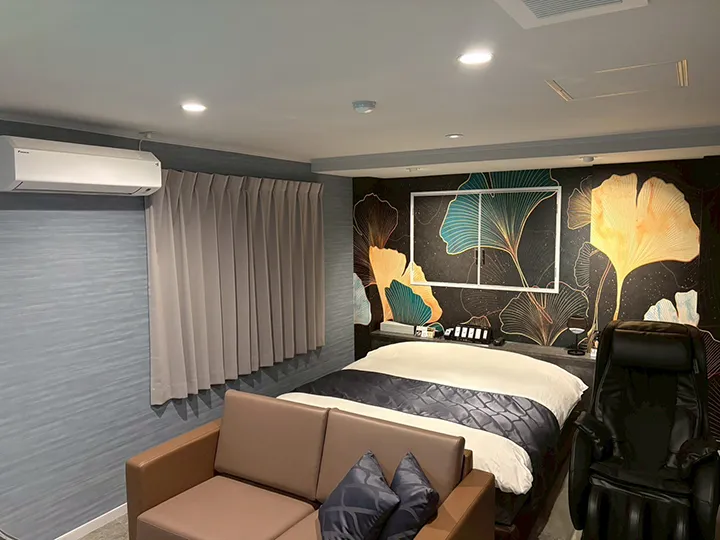 全体を通して感じられるのは“シンプルで心地よい滞在”。過度な装飾を排し、誰もが自然体で過ごせる空気を大切にしている。コストパフォーマンスの高さも魅力で、短時間利用から宿泊まで、気軽に利用できる。カップルはもちろん、出張などビジネス目的の宿泊にも対応しやすく、一人での滞在にもぴったりだ。館内に用意された全12室は、心地よさを軸にデザインされていて、どの部屋にも同じ安心感が息づいている。なかでもおすすめはCタイプの「206」「207」「306」「307」。冷凍冷蔵庫に加えてワインセラーを備え、くつろぎの時間をより上質に演出してくれるだろう。落ち着いた照明と控えめなインテリアが、心からリラックスできる一夜を約束してくれているようだ。