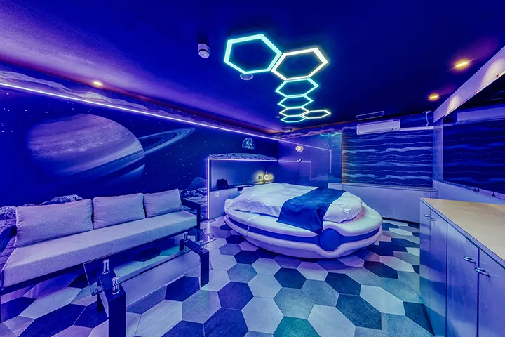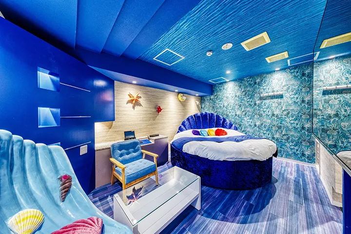 ホテル名の「アトランティス」は“深海”を意味する。その名の通り「深い癒し」をテーマに、多様な世界観を一つの施設に凝縮した極上のエンターテイメントレジャーホテルだ。館内全62室、15のコンセプトルームを備え、訪れるたびに異なる非日常体験が楽しめる場となっている。